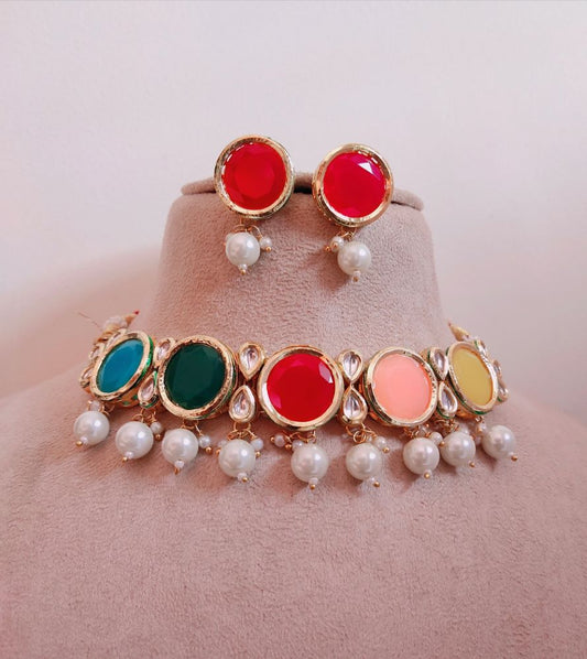 MULTICOLOR AGRIMA KUNDAN JEWELLERY SET
