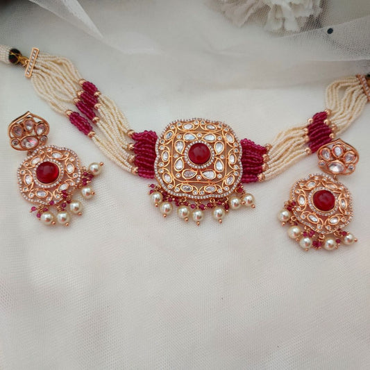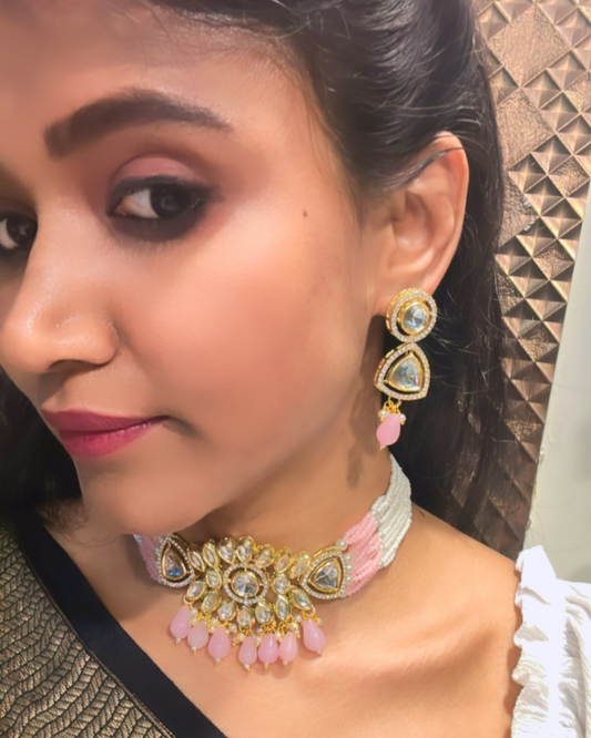 Sold outPINK NIRAJA KUNDAN JEWELLERY SET